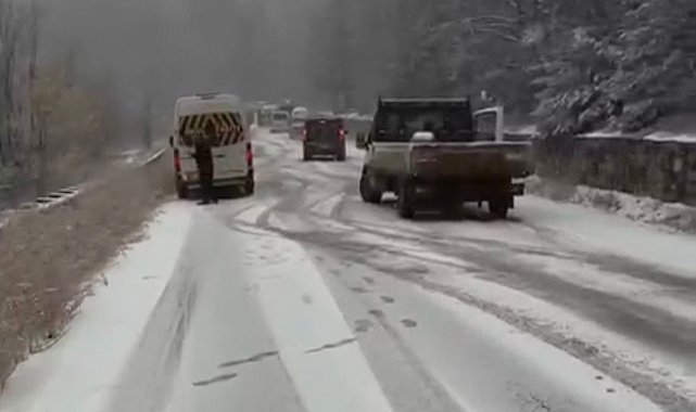 Öte yandan Bursa'nın İnegöl ilçesi ile Kütahya'nın Domaniç ilçeleri arasındaki dağlık bölgede yoğun kar ve buzlanma sürücülere zor anlar yaşattı. Yol trafiğe kapanırken İnegöl Jandarma Komutanlığı ekipleri zincirsiz ve kar lastiği olmayan araçların seyir etmesine izin vermiyor