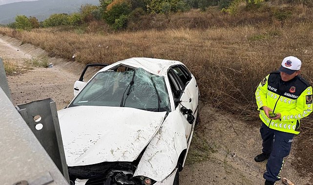 Edinilen bilgiye göre, saat 15.30 sıralarında İznik istikametine ilerleyen otomobil yoğun yağış nedeniyle kayganlaşan yolda seyir halinde olan Yunus Ş. (29) idaresindeki 07 DG 538 plakalı otomobil sürücünün direksiyon hakimiyetini kaybetmesiyle kontrolden çıkarak refüje uçtu.