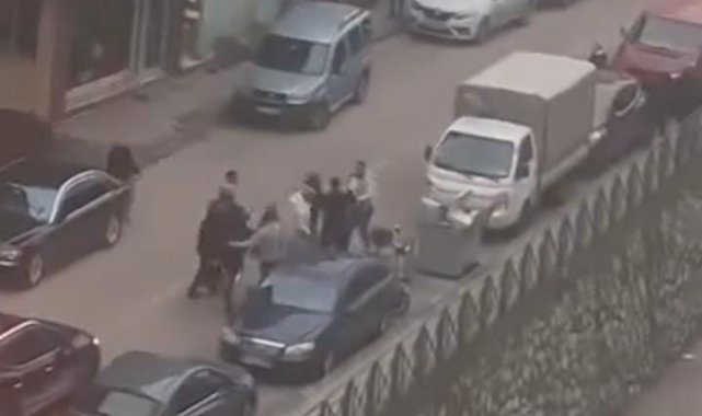 Bursa'da cadde ortasında çıkan kavga sonrası ortalık savaş alanına döndü. Ringi andıran görüntüler yaşandı. Taraflar birbirlerine yumruk ve küfürle saldırdı.