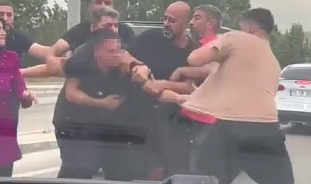 Bursa'da trafikte yol verme meselesi yüzünden başlayan tartışma kısa sürede kavgaya dönüştü. Araçlarından inen iki sürücü, anayolda birbirine girdi.
