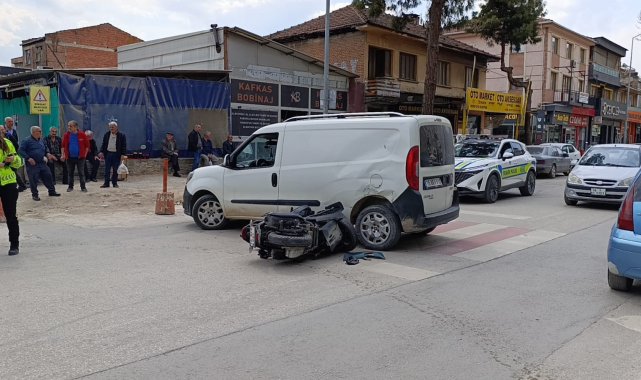 Bursa'nın İnegöl ilçesinde hafif ticari araç ile çarpışan motosikletin sürücüsü yaralandı.