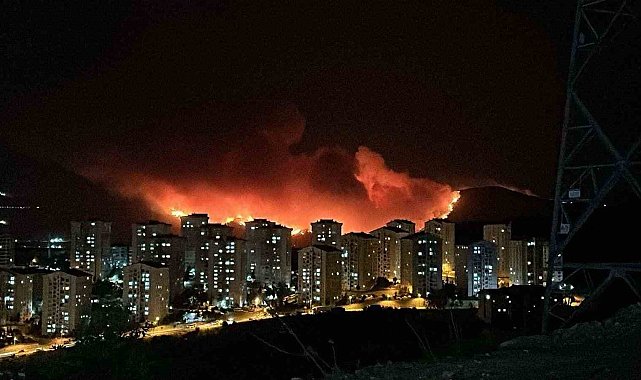 Vadide kalan köy, tepedeki alevlerin tehdidi altında. Geceyi kızıla boyayan yangına karşı ekiplerin ve vatandaşların mücadelesi sürüyor. Yükselen alevler dron ile havadan görüntülendi.