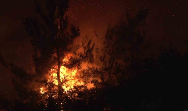 Rüzgar nedeniyle devam eden yangında ekipler söndürme çalışmalarına devam ediyor.