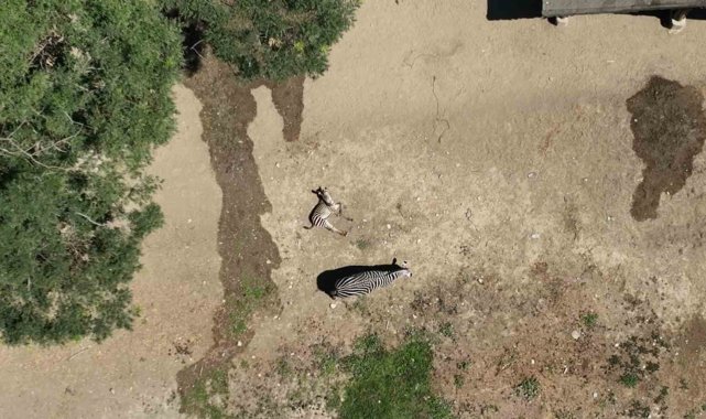 Bursa Hayvanat Bahçesi'nde 3 zebra dünyaya geldi. Zebra ailesinin yeni fertleri, ortamlarına ayak uydurmaya çalışıyor. 40 derece sıcaktan bunalan zebralar ise gölgede serinlemenin tadını çıkarıyor