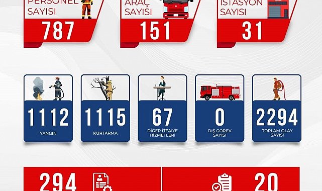 Yapılan açıklamada ayrıca 3 bin 958 kişiye eğitim, olaylarla alakalı 294 itfaiye raporunun hazırlandığı ve 20 denetim gerçekleştirildiği ifade edildi.