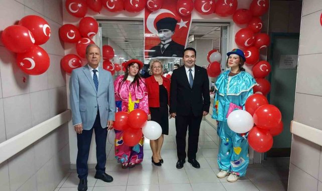 Önce, Bursa Yüksek İhtisas Eğitim ve Araştırma Hastanesi'ne giden koro üyeleri,23 Nisan için bayrak ve balonlarla donatılmış, palyaçolarında yer aldığı çocuk kliniğinde her yaşta yatan çocukları Başhekim Doç. Dr. Mehmet Oğuzhan Ay, Başhekim Yardımcısı Uzm. Dr. Muhammed Arap ve Sağlık Bakım Hizmetleri Müdürü Medine Seymen Aybey ile birlikte tek tek ziyaret ederek yaşlarına uygun oyuncak, giyim ve zeka oyunları armağan etti. 23 Nisan Ulusal Egemenlik ve Çocuk Bayramlarını kutladı.