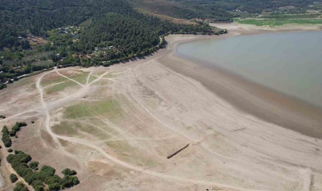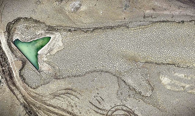 Dronla kaydedilen görüntülerde, iki baraj göletinde de suyun büyük oranda çekildiği, bazı noktalarda çekilmenin 300 metreyi bulduğu ve zeminde derin çatlakların oluştuğu görülüyor.