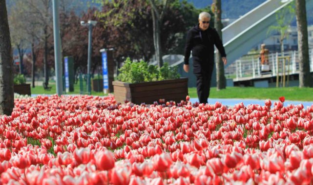 Bursa Büyükşehir Belediyesi'nce dikilen 500 bin lale ve diğer çiçeklerle kentin park ve bahçeleri rengarenk oldu.