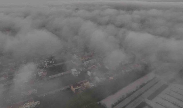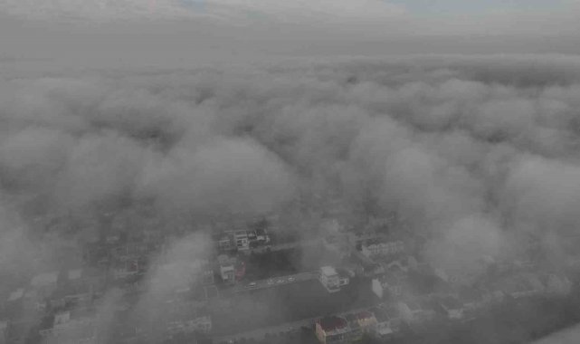 Tamamen sis bulutlarının altında kaybolan şehrin dron ile çekilen masalsı görüntüleri izleyenleri mest etti. Sis bulutları saat 10.00'dan itibaren etkisini kaybetti.