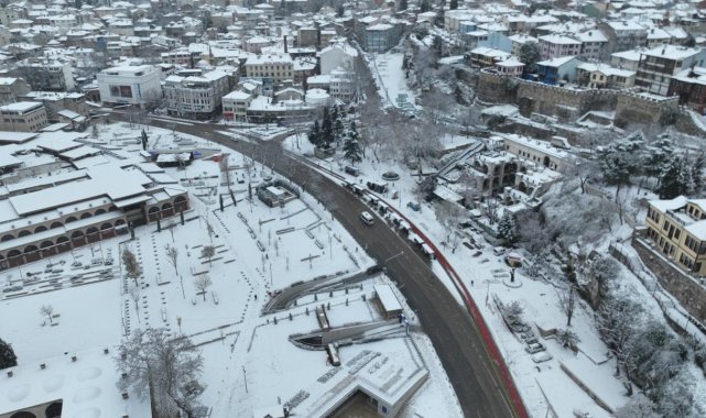 Bursa yeni yılın ilk gününe karla uyandı. Her yer bembeyaz olurken, şehrin simge noktaları dron ile görüntülendi.