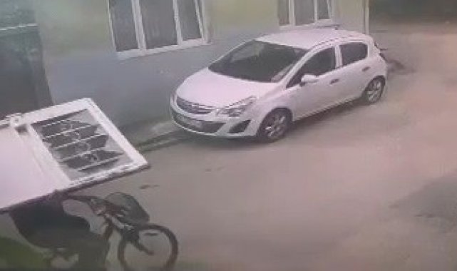 Bursa'da bir hırsız evin depo kısmında bulunan kapıyı sırtlayıp bisikletle kayıplara karıştı. Hırsızın hem bisiklet sürüp hem de bisiklet üzerinde kapıyı taşıması izleyenleri hayrete düşürürken, o anlar güvenlik kamerasına yansıdı.