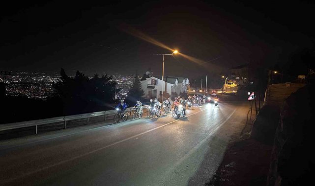 Bursalı bisiklet tutkunları her yıl geleneksel hale getirdiği bisiklet turunun bu yıl 11.'sini düzenledi. Uludağ tırmanış etkinliği için saat 21.00'da Esentepe mahallesinde toplanan yaklaşık 40 bisikletçi, 3 saat pedal çevirerek Uludağ'a çıktı. Milli Parklar girişine kadar çıkan bisikletçiler, hatıra fotoğrafı çektirip, o anları kayıt altına aldı.