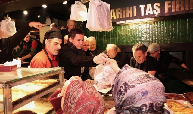 Bursa'da Tarihi Abdal Meydanı'nda simit ve tahinli pide ile sahur yapmak isteyen vatandaşlar metrelerce kuyruk oluşturdu. Adım atacak yer kalmayan meydana gelen Osmangazi Belediye Başkanı Erkan Aydın, vatandaşlarla bir araya gelerek sahur yaptı.