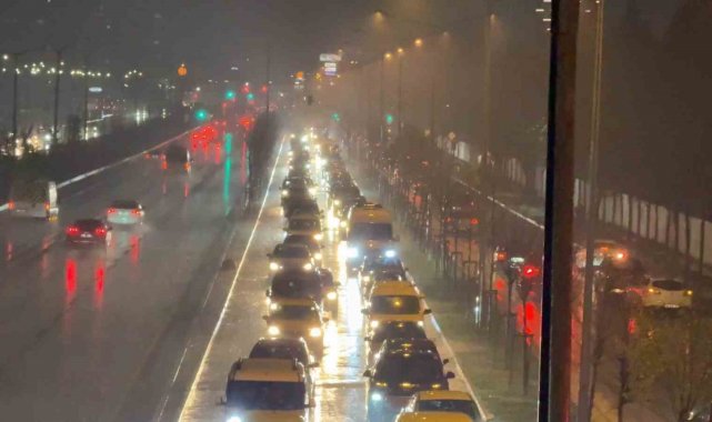 Kilometrelerce oluşan araç konvoyuna yağmurda eklenince vatandaşlar büyük stres yaşadı.