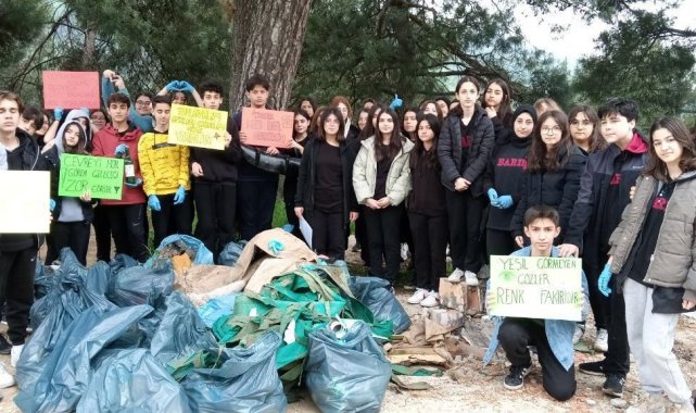 Bir çok çöp ve atık malzemeyi doğa bırakıp gidenlerin kirlettiği doğayı, temizleyen gençler topladıkları çuval çuval atık malzemeyi geri dönüşüme kazandırmak için belediye ekiplerine teslim etti. Çevreci öğrenciler hem hocalarından hem de doğaseverlerden tam not aldı.