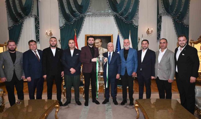 Nesine 3. Lig 1. Grup'ta şampiyonluğa ulaşarak 2. Lig'e yükselmeye hak kazanan Bursaspor'un Başkanı Enes Çelik ve yönetim kurulu üyeleri, şampiyonluk kupasıyla birlikte Bursa Büyükşehir Belediye Başkanı Mustafa Bozbey'i Tarihi Belediye Binası'nda ziyaret eti. Samimi bir ortamda gerçekleşen ziyarette, zorlu bir süreçten geçerek bir üst lige çıkmayı başaran Bursaspor'un yeni hedefleri konuşuldu.