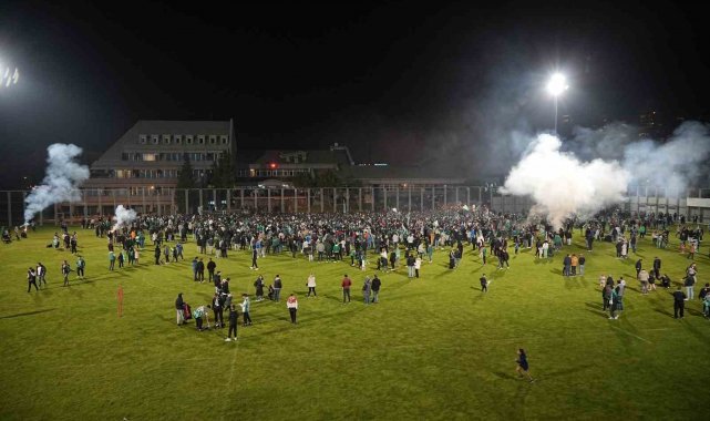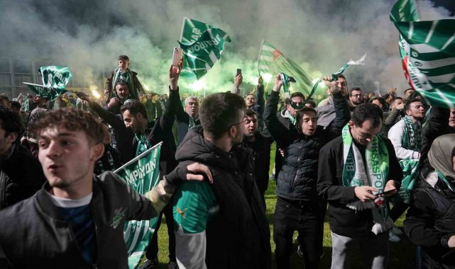 Deplasmanda Artin Hopaspor'u 2-1 mağlup edip lig bitimine 2 hafta kala şampiyonluğunu ilan eden Bursaspor maçın ardından Özlüce İbrahim Yazıcı Tesisleri'ne geldi. Yeşil-beyazlı taraftarlar takımı tesis etrafında meşaleler ve tezahüratlarla karşıladı. Yoğun ilgiyle karşılaşan takımın otobüsü kalabalıktan ilerleyemedi. Tesise çıkan kulüp yöneticileri, teknik heyet ve futbolcular, taraftarı el sallayarak selamladı. Besteler eşliğinde şampiyonluğu kutlayan takım ve taraftarlar eski teknik direktör Pablo Martin Batalla'ya da selam gönderdi.