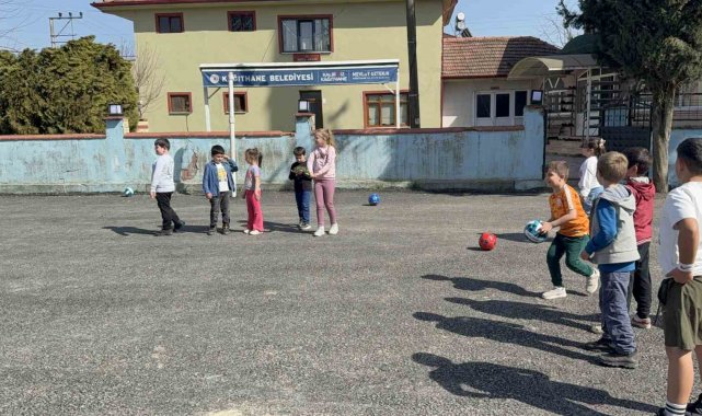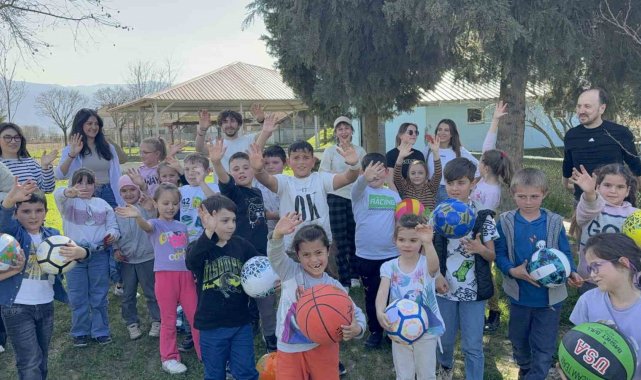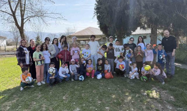 Düzce Üniversitesi öğrencileri, burslarından artırdıkları paralarla Bostanlık köyünde yaşayan çocuklara futbol, voleybol ve basketbol topları hediye etti.
