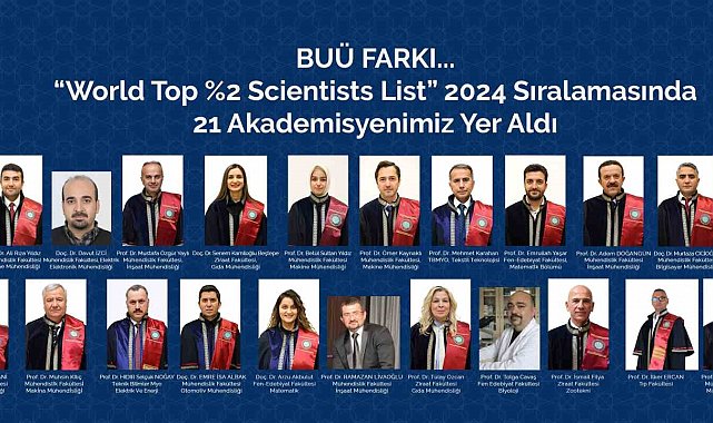200 binden fazla bilim insanının 2024 yılı çalışmalarının incelendiği listede 2 binden fazla Türk akademisyen yer aldı. Çalışmalarına BUÜ'de devam eden 21 akademisyen de en iyiler sıralamasında gösterildi. Tüm akademik kariyerleri boyunca yaptıkları çalışmalar dikkate alınarak oluşturulan sıralamada ise toplam 16 BUÜ'lü öğretim üyesi yer almayı başardı. 2022 yılında yayınlanan aynı listede 11, 2023 yılındaki listede ise sadece 14 akademisyen sıralamaya girebilmişti.