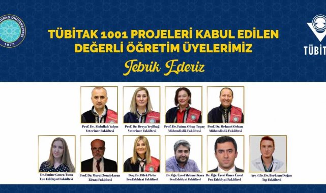 Araştırma Destek Programları Başkanlığı'nın (ARDEB) açıkladığı listede, Prof. Dr. Abdullah Yalçın, Prof. Dr. Derya Yeşilbağ, Prof. Dr. Fatma Olcay Topaç, Prof. Dr. Mehmet Orhan, Prof. Dr. Murat Zencirkıran, Doç. Dr. Dilek Pirim, Dr. Öğr. Ü. Mehmet Kara, Dr. Öğr. Ü. Ömer Uysal, Arş. Gör. Berkcan Doğan ve Doktora Sonrası Araştırmacı Emine Gonca Tuna yer aldı. Toplam 10 proje kabulü ile BUÜ, Türkiye genelinde en fazla proje desteği alan 9. yükseköğretim kurumu olmayı başardı.
