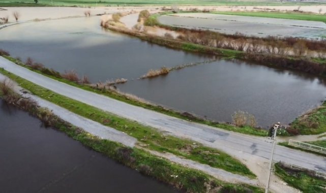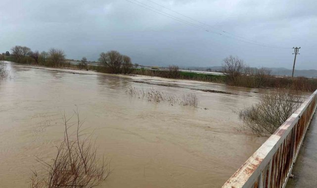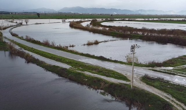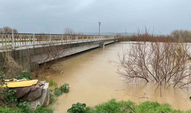 Büyük Menderes nehrindeki taşkın karayolunu kapattı