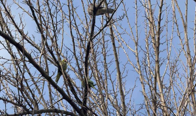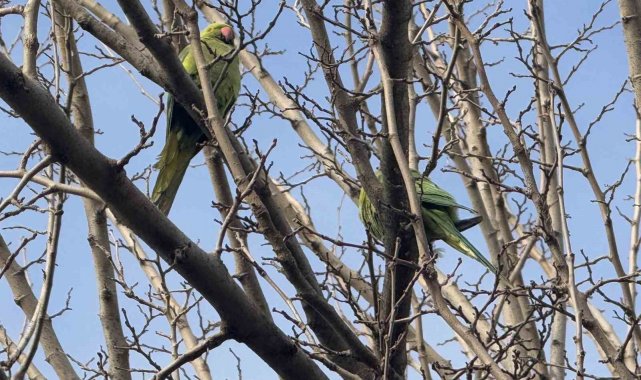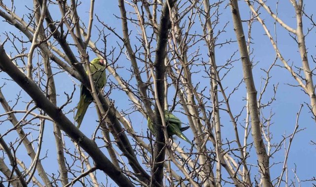 Büyükçekmece'de ağaçlarda görülen İskender Papağanı şaşırttı