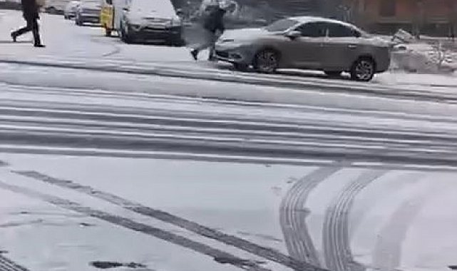 Edinilen bilgilere göre olay Büyükçekmece Gerede Caddesi'nde yaşandı. Bir araç yokuştan çıkamayınca sürücü el frenini çekti. El freni çekilen araç geri geri kayarak elektrik direğine çarptı. Bir araçta ilerlemekte zorluk çekti. Kaza anı cep telefonu kamerasına yansıdı.