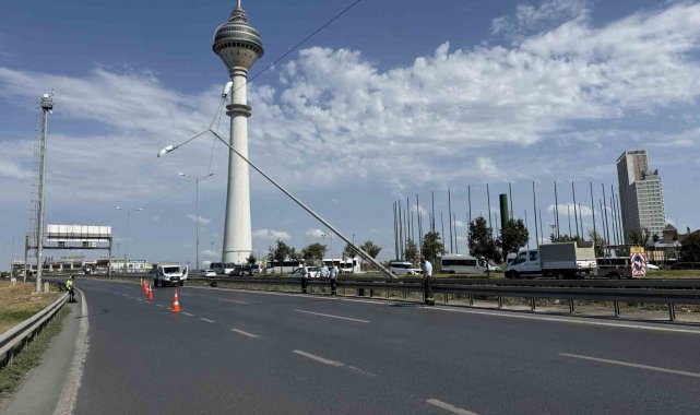 İstanbul'un Büyükçekmece ilçesinde E-5 Karayolu'nda şiddetli rüzgar nedeniyle aydınlatma direği yan yattı. Beylikdüzü istikametinde anayol trafiğe kapatılırken, yetkililer tarafından bugün için şiddetli poyraz uyarısı yapılmıştı.