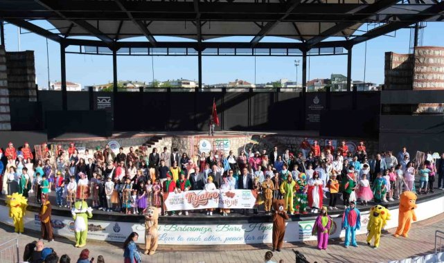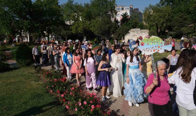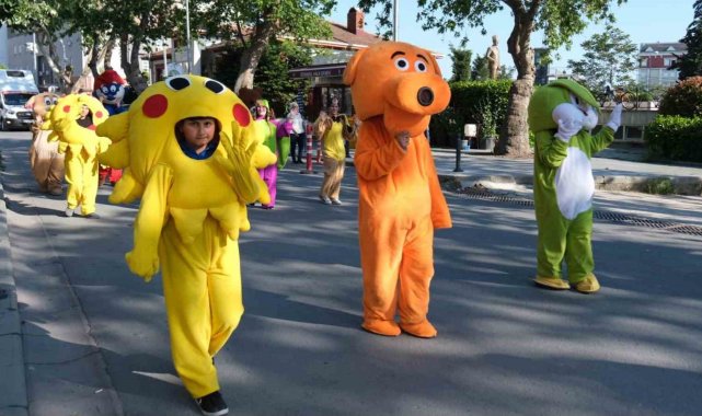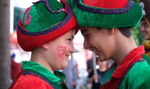 Geleneksel Türk tiyatrosunun simgeleri, rengarenk kostümler, dev maskotlar ve bando takımı eşliğinde başlayan kortej yürüyüşü, görsel bir şölene dönüştü.