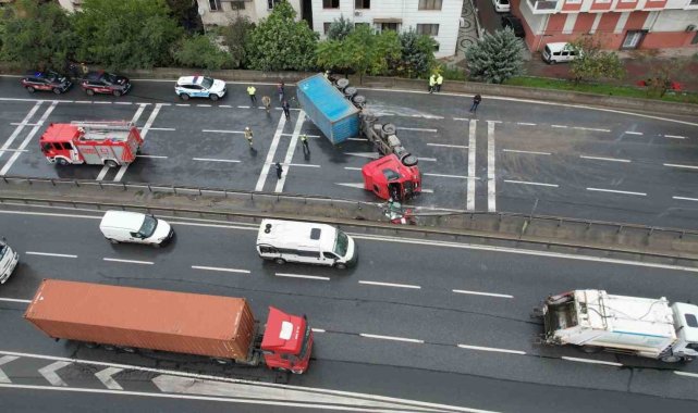 Kaza, saat 10.30 sıralarında E-5 karayolu İstanbul Büyükçekmece mevki Kumburgaz istikametinde yaşandı. Edinilen bilgilere göre sürücü M.E.P. (25) hakimiyetindeki 59 AAR 214 plakalı TIR yağmur nedeniyle kayganlaşan yolda kontrolden çıktı. Bariyere vuran araç devrilerek yan yattı. Hafif yaralanan M.E.P. çevredeki diğer sürücüler tarafından araçtan çıkarıldı. Olay yerine çok sayıda ekip çağrıldı. Kaza nedeniyle Kumburgaz istikametinde trafik yakışık 2 saat kapalı kaldı. Aracın kaldırılmasıyla yol yeniden trafiğe açıldı.
