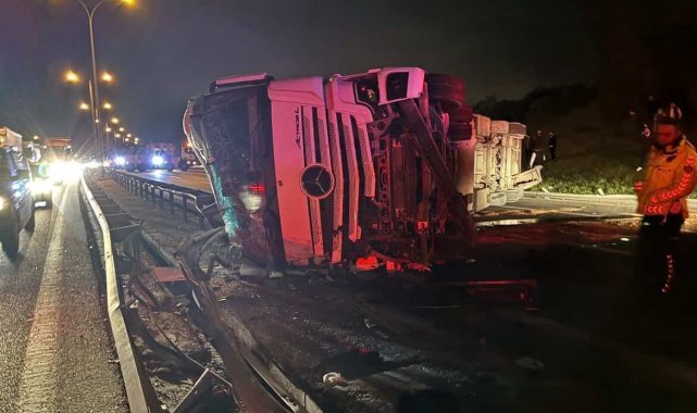 Büyükçekmece TEM Otoyolu'nda tır devrildi: Kilometrelerce trafik oluştu