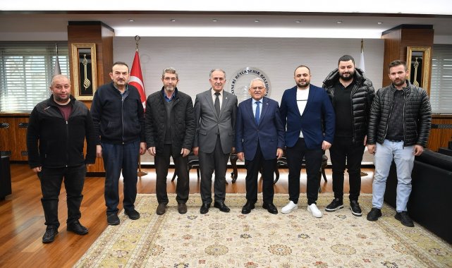 Kayseri'ye hizmet yolunda kent merkezi ve kırsalda 16 ilçe belediyesi ile dayanışma halinde yatırım ve hizmetlerini sürdüren Başkan Büyükkılıç, ilçe belediye başkanları ile istişarelerine de devam ediyor. Bu çerçevesinde, Bünyan Belediye Başkanı Selahattin Metin ve başkan yardımcıları, Büyükşehir Belediye Başkanı Dr. Memduh Büyükkılıç'ı ziyaret etti. Başkanlık makamında gerçekleşen ziyarette, Bünyan ilçesine yapılan ve yapılacak olan hizmetler de değerlendirildi. Ziyaretten duyduğu memnuniyeti dile getiren Başkan Büyükkılıç, "Bünyan Belediye Başkanımız Selahattin Metin ve Başkan Yardımcıları belediyemizi ziyaret etti. Güzel ilçemiz Bünyan için çalışmalarını aralıksız sürdüren kıymetli başkanımıza ve değerli ekibine kolaylıklar diliyorum" dedi. Bünyan Belediye Başkanı Selahattin Metin de misafirperverliğinden dolayı Başkan Büyükkılıç'a teşekkür ederek, "Bünyan'ımızın gelişimi için var gücümüzle çalışmaya devam edeceğimizi belirtiyor, misafirperverlikleri ve destekleri için kendilerine teşekkür ediyorum" diye konuştu. Öte yandan Kayseri'ye hizmete yönelik ortak akıl çerçevesinde kentteki her kesim ile istişareye önem veren Büyükkılıç, AK Parti Özvatan İlçe Başkanı Kemal Dumlu ve yönetim kurulu üyelerini, ASKON Kayseri Şube Başkanı İlker Barlı ve heyeti, Çelik Eşyacılar Odası Başkanı Mükremin Suludere ve yönetimi ile UDEM HAK SEN Genel Başkanı Abdullah Pekr ve heyetini kabul etti.