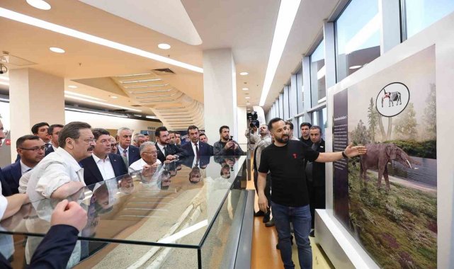 Büyükkılıç, Tunç, Elitaş ve Ataş ile beraberlerindeki heyet, Kayseri'nin Yamula Barajı çevresindeki kazılardan çıkarılan 7,5 milyon yıllık fosillerin yer aldığı sergide Uzman Antropolog Ömer Dağ'dan fosiller hakkında detaylı bilgi aldı. Sergiyi ilgiyle gezen Bakan Tunç, fosilleri yakından inceledi.