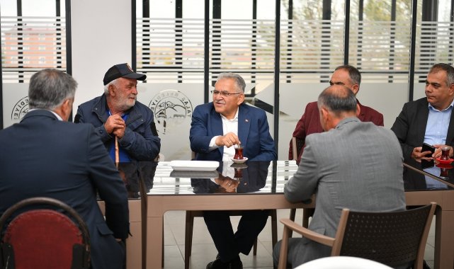 Talas ilçesi Kepez, Yazyurdu, Çömlekçi mahallelerini ziyaretinde Başkan Büyükkılıç'a Büyükşehir Belediyesi Genel Sekreter Yardımcıları Ufuk Sekmen, Mustafa Türkmen ve Kırsal Hizmetler Daire Başkanı Yasin Harmancı eşlik etti.