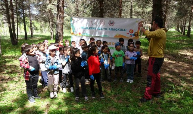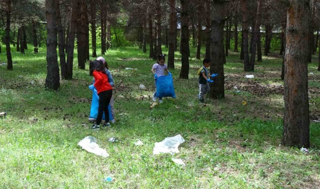 Erzurum'da bir grup anaokulu öğrencisi öğretmenlerinin nezaretinde hem büyüklerinin kirlettiği çevreyi temizlediler hem de çevre adına anlamlı mesajlar verdi.