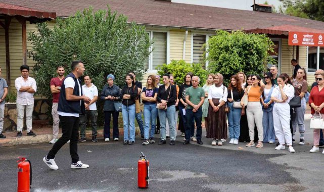 Antalya Büyükşehir Belediyesi İtfaiye Daire Başkanlığı, kurum içi iş güvenliği tedbirleri kapsamında belediye personeline yönelik yangın eğitimlerini sürdürüyor. Eğitimlerde yangınların nedenleri, acil durum müdahaleleri ve tahliye yöntemleri teorik olarak anlatılırken, uygulamalı yangın söndürme tatbikatları ile bilgiler pratiğe dökülüyor.