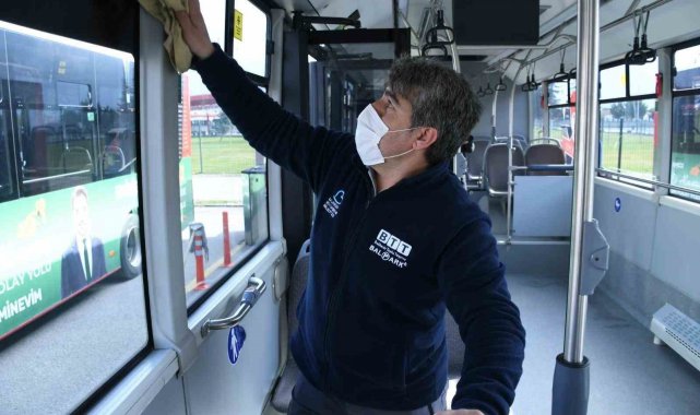 Halk sağlığını gözeten, temiz ve çevreci çalışmalarla Balıkesir'i dünya kentleriyle yarışır hale getirmeyi hedefleyen Balıkesir Büyükşehir Belediye Başkanı Ahmet Akın öncülüğünde BTT AŞ bünyesindeki toplu taşıma araçları rutin temizliğin yanı sıra ilaçlanarak dezenfekte ediliyor.
