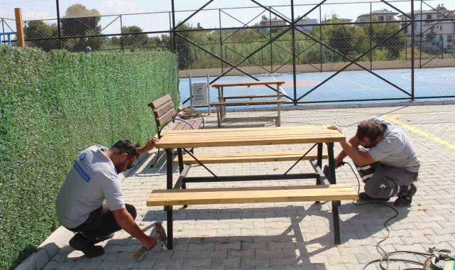 Alanya'daki 9 mahalledeki okul, cami ve muhtarlık gibi ortak kullanım alanı olan yerlere de bank ve piknik masası desteğinde bulunuldu. Ekipler malzemeleri muhtarlar ve okul müdürlerine teslim ederken, gösterilen noktalara da monte etti.
