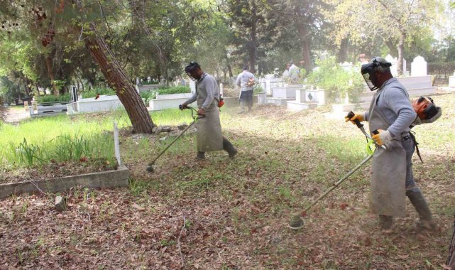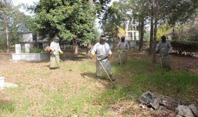 Antalya Büyükşehir Belediyesi Mezarlıklar Şube Müdürlüğü ekipleri, Antalya'nın doğu ve batı ilçelerindeki mezarlık alanlarında temizlik çalışmalarını sürdürüyor. Büyükşehir ekipleri ilçelerdeki mezarlık alanlarında hummalı bir çalışma gerçekleştirirken, mezarlar aralarındaki yollarda bozulan bordür taşlarını yeniliyor. Ekipler, mezar duvarlarında düzenleneme yaparak, yıkılan duvarlar onarılıyor boyanıyor. Mezarlık alanlarındaki büyüyen ot ve bitkiler kesilirken, bir yandan da ilaçlama yapılıyor. Vatandaşların rahat bir şekilde kabir ziyareti yapabilmesi amacıyla ekipler, titiz bir çalışma yürütüyor.