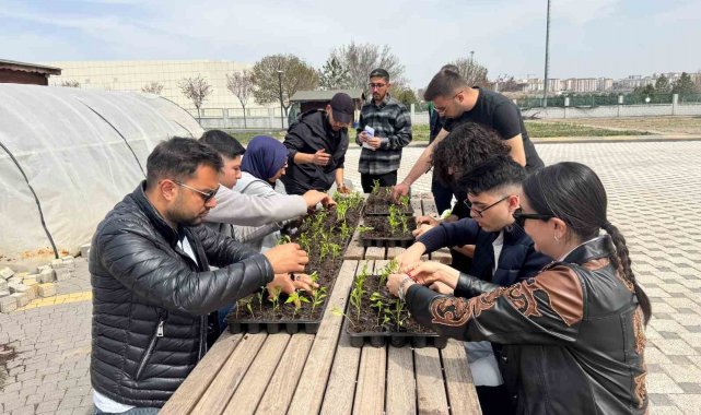 Kayseri Büyükşehir Belediyesi, Doğal Ürünler Bahçesi'nde Kayseri Üniversitesi öğrencilerine yönelik uygulamalı tarım eğitimiyle doğal üretimin yaygınlaştırılmasına katkı sağladı.
