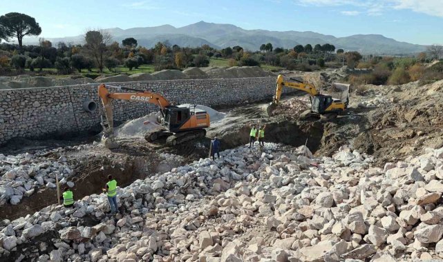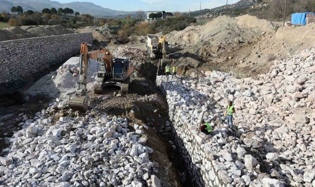 Muğla Büyükşehir Belediyesi, Yatağan'ın Hacıbayramlar Mahallesi'nde özellikle yağışlı dönemlerde zemin çökmesi yaşanan Delice Çayı üzerinde 29 milyon 352 bin liralık yatırımla taş istinat duvarı yapımına başladı.