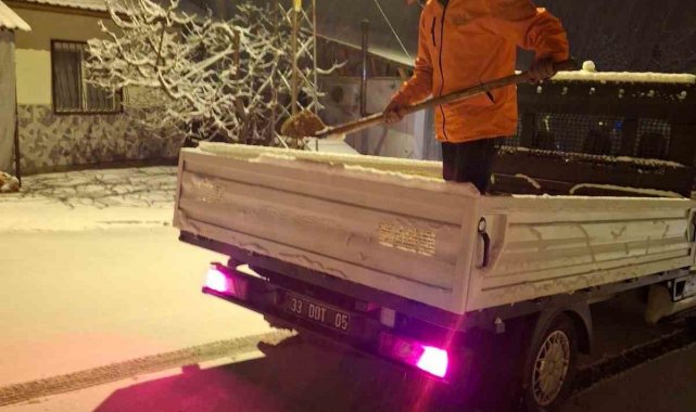 Mersin Büyükşehir Belediyesi ekipleri gece boyunca karla mücadele çalışması yürüttü