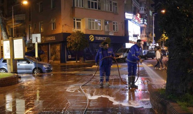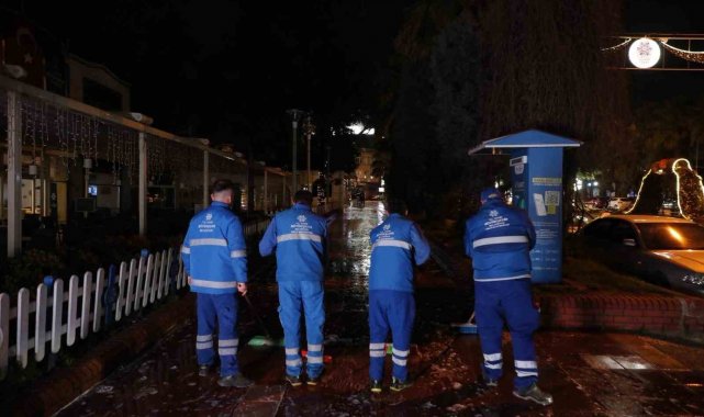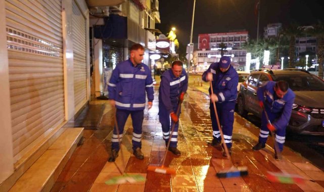 Büyükşehir ekipleri gece boyunca temizlik çalışması gerçekleştirdi