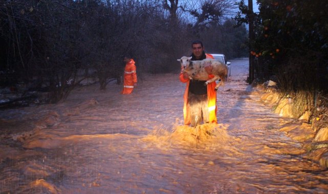 Şiddetli yağıştan en çok etkilenen ilçelerden biri olan Kumluca'da Büyükşehir ekipleri gece boyunca yoğun bir mesai yaptı. Kumluca'nın Kum ve Toptaş Mahallesi'nde ekipler sular altında kalan noktalarda vatandaşın yardımına koştu. Kumluca'da bir ahırda mahsur kalan hayvanlar, Büyükşehir Belediyesi ekiplerinin titiz çalışmasıyla kurtarıldı. Yağmur ile birlikte kanallarda biriken ağaç dalları kepçelerde kaldırılarak, su akışı sağlandı. Yağış nedeniyle bozulan yollarda bakım ve onarım çalışmaları gerçekleştirilirken, ASAT ekipleri de rögarların açık tutulması için yoğun mesai yaptı.