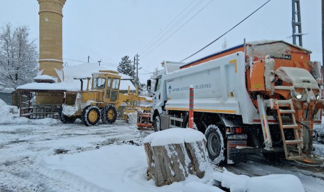 Kayseri Büyükşehir Belediyesi, kar yağışı ve tipi sonrası kent genelinde ulaşımın aksamaması için yoğun bir çalışma yürütürken, ekipler, gece yarısından sabaha kadar 5 ilçede 560 kilometrelik yol ağında 72 mahalle yolunu yeniden ulaşıma açtı.