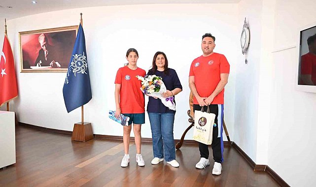 Aydın Büyükşehir Belediyesi Atatürk Spor Kompleksi'nde gerçekleştirilen eğitimler ile milli takıma giren genç yüzücü Nisan Ada Balkan, Büyükşehir Belediye Başkanı Özlem Çerçioğlu'nu makamında ziyaret etti.