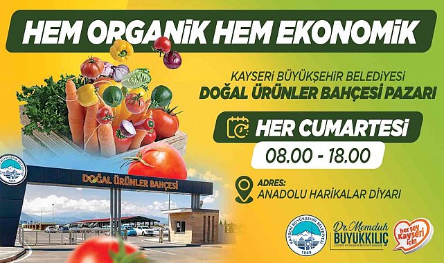 Kayseri Büyükşehir Belediyesi bünyesinde hizmet veren Anadolu Harikalar Diyarı içerisinde yer alan hem organik hem de ekonomik Doğal Ürünler Bahçesi Pazarı, 26 Temmuz Cumartesi günü kapılarını açıyor.