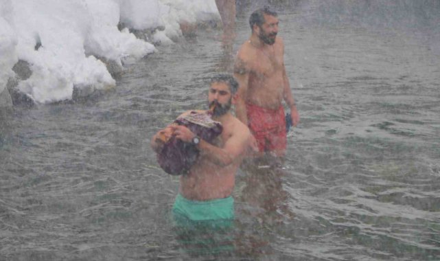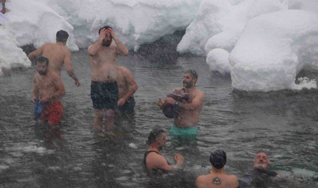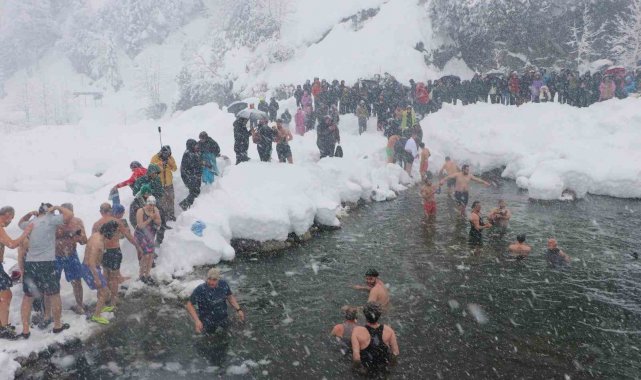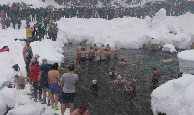 Rize'de bu yıl 9'uncusu düzenlenen 'Kış Yüzme Şenliği' renkli görüntülere sahne olurken katılımcılar buz gibi suda yüzdüler.