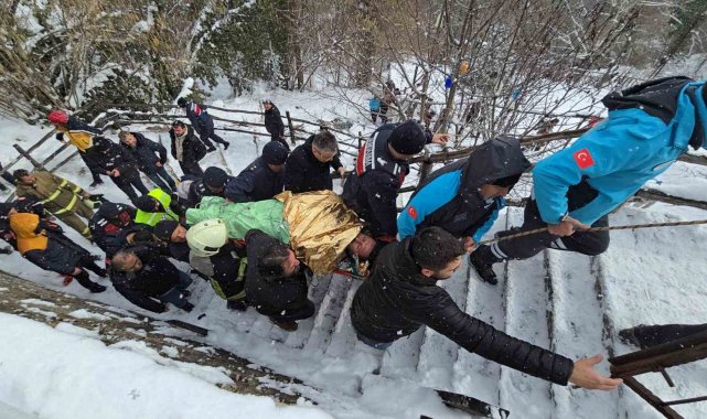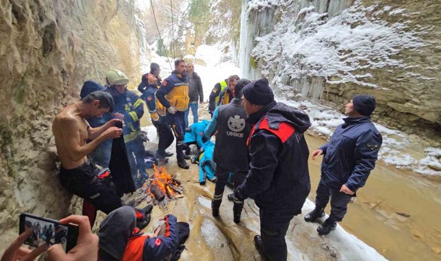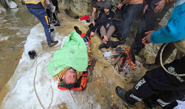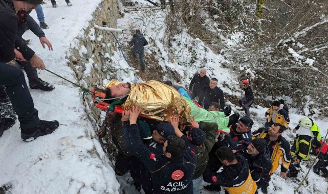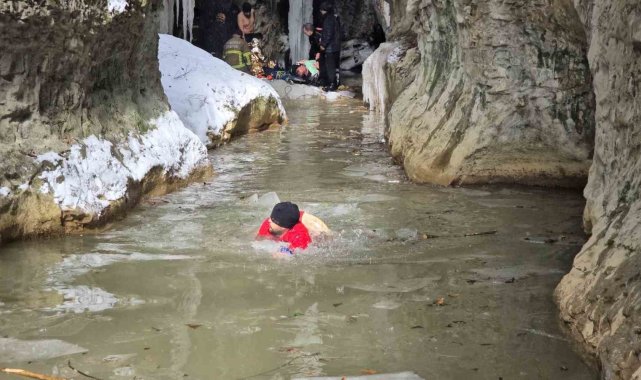 Öte yandan olayı gören Kamil Akmaz, park ettiği aracına bakmak için aşağıya indiğini söyleyerek, "Araç Danaköy tarafından geliyordu. Yolda buz vardı ve duramayınca kayarak, kanyona dereye uçtu. Benim gözümün önünde olunca hemen arayıp yardım istedim" dedi.