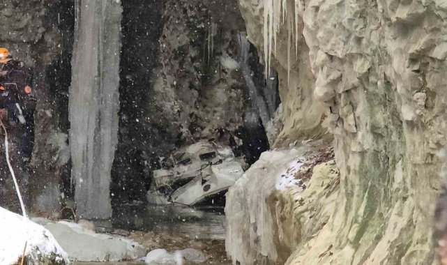 Buz kaplı yoldan çıkan otomobil 30 metreden kanyona uçtu